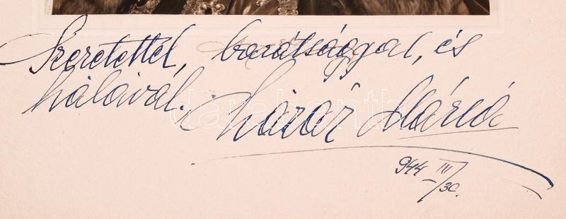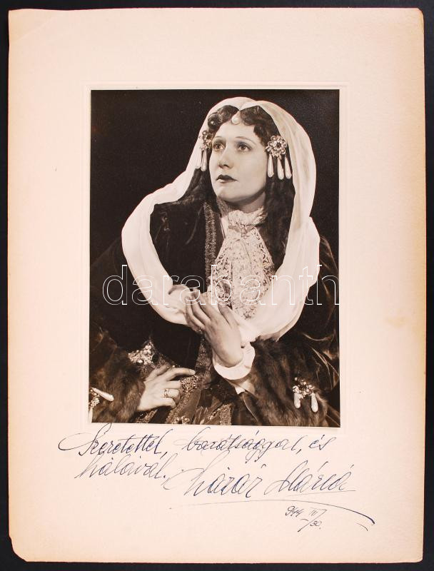 Beschreibung: 1944 Lázár Mária színésznő aláírása, üdvözlő sorai, nagyméretű fotó, paszpartura ragasztva 23x17 cm
