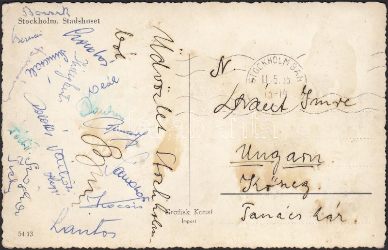 1955 Aranycsapat tagjainak aláírása levelezőlapon 9x13 cm https://www.darabanth.com/de/195-Fernauktion/195.0/Andere-Sammelgebiete/Signatur~800016/1955-Aranycsapat-tagjainak-alairasa-levelezolapon-9x13-cm~II746575