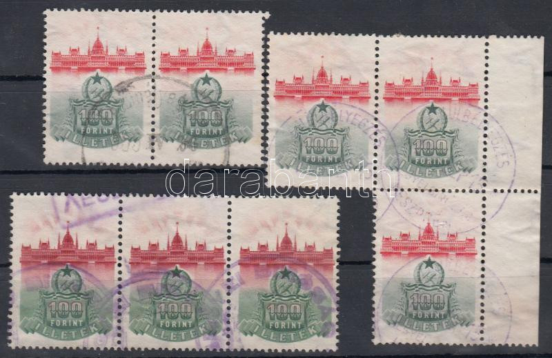 Beschreibung: 1952 100Ft illetékbélyeg színváltozatokkal, összesen 8 db