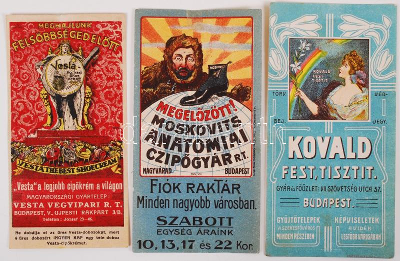 Cca 1910 3 db számolócédula (Vesta cipőkrém, Kovald fest, tisztít, Mos... https://www.darabanth.com/de/195-Fernauktion/195.0/Andere-Sammelgebiete/Werbungen~800019/Cca-1910-3-db-szamolocedula-Vesta-cipokrem-Kovald-fest-tisztit-Moskovits-Czipogyar-RT~II748647