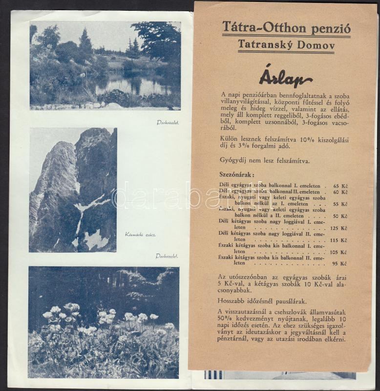 cca 1930 Tátra-Otthon penzió, képes prospektus árjegyzékkel https://www.darabanth.com/de/195-Fernauktion/195.0/Andere-Sammelgebiete/Werbungen~800019/cca-1930-Tatra-Otthon-penzio-kepes-prospektus-arjegyzekkel~II747229