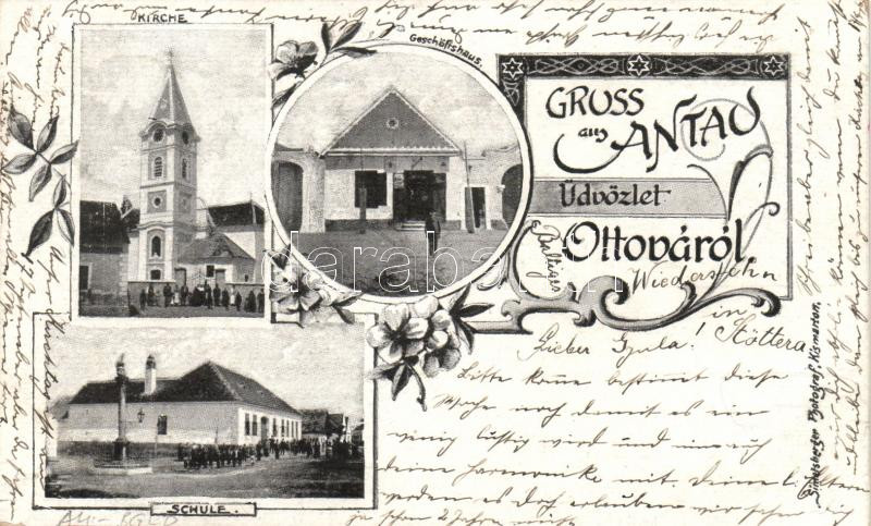 Beschreibung: Selegszántó / Ottova, Antau; church, school, shop, floral