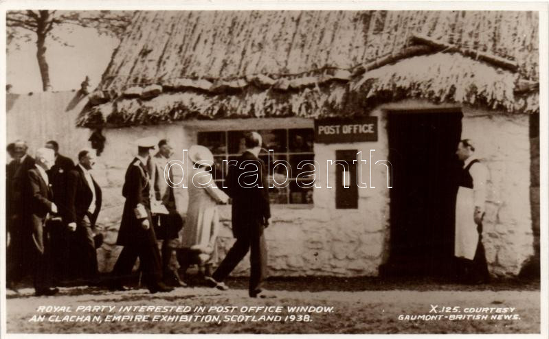 Glasgow, Empire Exhibition, Scotland 1938, Royal party interested in p... https://www.darabanth.com/de/195-Fernauktion/195.0/Ansichtskarten/GroC39Fbritannien~800111/Glasgow-Empire-Exhibition-Scotland-1938-Royal-party-interested-in-post-office-window-an-clachan-~II744930
