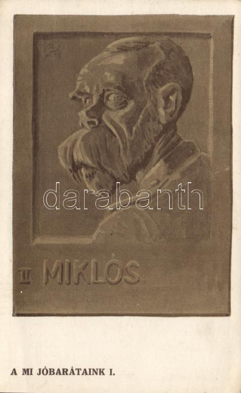 II. Miklós, A Mi Jóbarátaink I., Borsszem Jankó, Kner Izidor kiadása https://www.darabanth.com/de/195-Fernauktion/195.0/Ansichtskarten/Herrscher-Politiker-Konigshauser~800128/II-Miklos-A-Mi-Jobarataink-I-Borsszem-Janko-Kner-Izidor-kiadasa-3Cbr3E~II745128