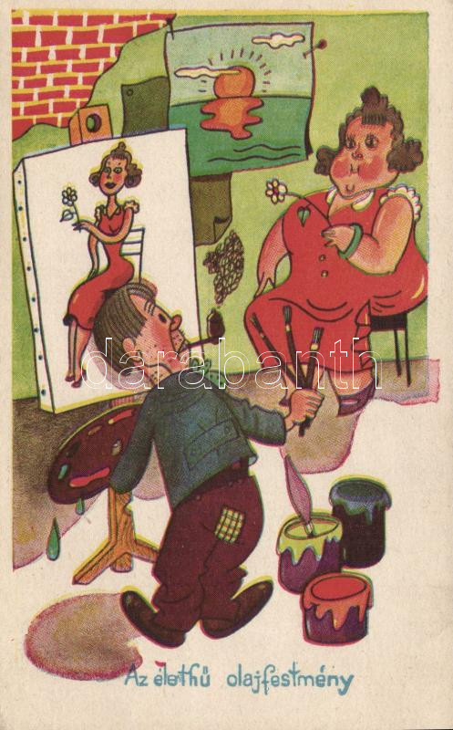 Humour / Az élethű olajfestmény https://www.darabanth.com/de/195-Fernauktion/195.0/Ansichtskarten/Humor~800086/Humour-Az-elethu-olajfestmeny~II745521