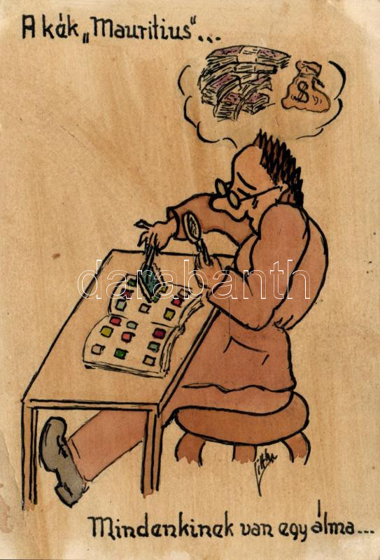 Humour, stamp / A kék Mauritius, Mindenkinek van egy álma (EK) https://www.darabanth.com/de/195-Fernauktion/195.0/Ansichtskarten/Humor~800086/Humour-stamp-A-kek-Mauritius-Mindenkinek-van-egy-alma-EK~II746890