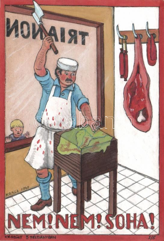 Nem! Nem! Soha! / Hungarian irredenta, butcher, hand-painted postcard,... https://www.darabanth.com/de/195-Fernauktion/195.0/Ansichtskarten/Irredenta~800146/Nem-Nem-Soha-Hungarian-irredenta-butcher-hand-painted-postcard-vissza-So-Stpl-s-Kabla-EK~II749961