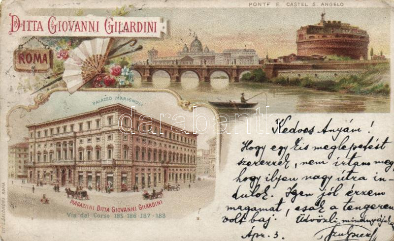 Rome, Marignoli palace, Castel Sant'Angelo, litho (EK) https://www.darabanth.com/de/195-Fernauktion/195.0/Ansichtskarten/Italien~800121/Rome-Marignoli-palace-Castel-SantAngelo-litho-EK~II747460