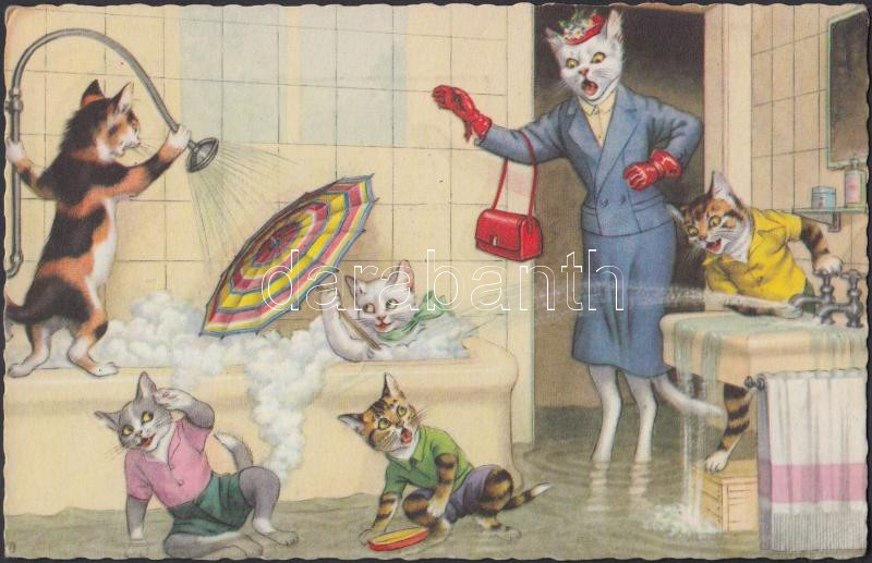 1958 Cat children and mother, bathing, modern postcard (EK) https://www.darabanth.com/de/195-Fernauktion/195.0/Ansichtskarten/Katzen~800109/1958-Cat-children-and-mother-bathing-modern-postcard-EK~II744025
