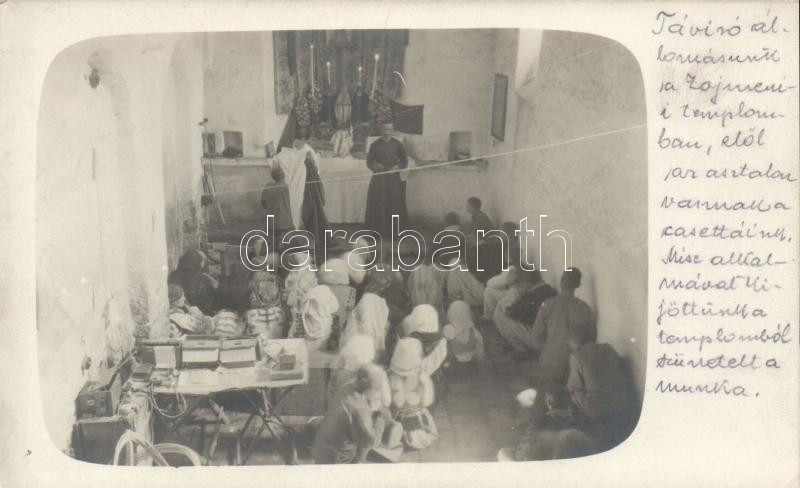 Beschreibung: Zejmen távíró állomás a templomban, mise / WWI K.u.k. military, telegraph station in the church, mass ceremony, Zejmen, photo
