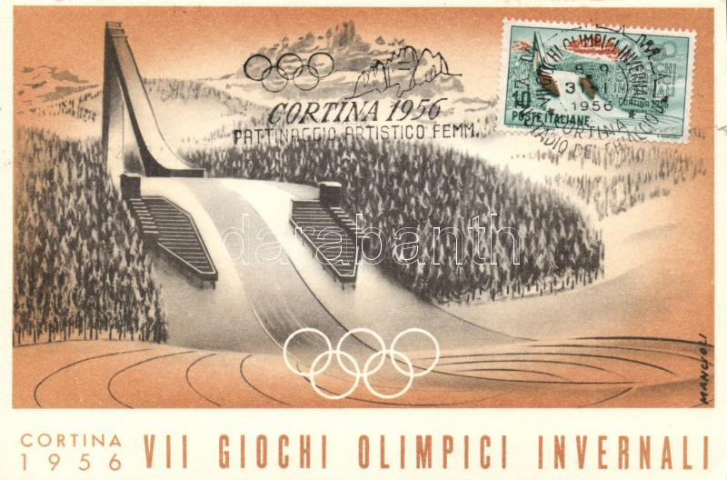 1956 Cortina d'Ampezzo Winter Olympics, So. Stpl (EK) https://www.darabanth.com/de/195-Fernauktion/195.0/Ansichtskarten/Olympische-Spiele~800113/1956-Cortina-dAmpezzo-Winter-Olympics-So-Stpl-EK~II745321