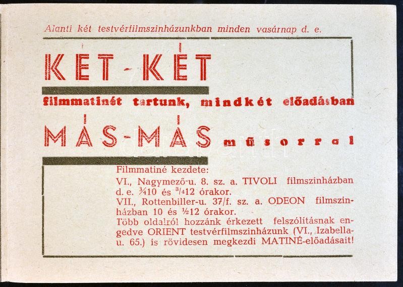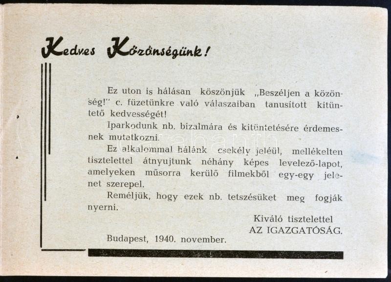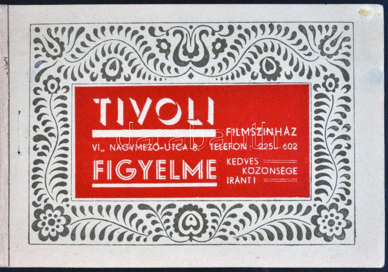 Beschreibung: Tivoli filmszínház 2 db-os régi képeslap füzete színészekről, színdarabokról, benne nyereményjáték felhívás / cinema's postcard-booklet, artists, plays