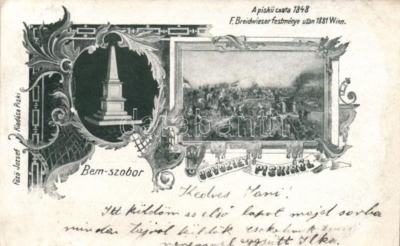 Beschreibung: Piski, Bem szobor, A piski csata, pinx. Breidwieser / statue, battle of Piski, Art Nouveau