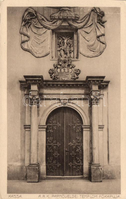 Kassa papneveldei templom főkapuja / main gate of seminary church https://www.darabanth.com/de/195-Fernauktion/195.0/Ansichtskarten/Slowakei~600009/Kassa-papneveldei-templom-fokapuja-main-gate-of-seminary-church~II748394