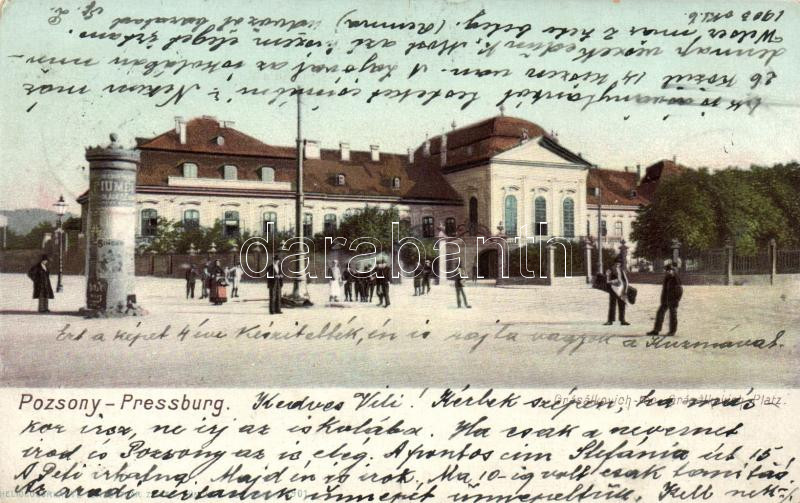 Pozsony, Grassalkovich tér / square https://www.darabanth.com/de/195-Fernauktion/195.0/Ansichtskarten/Slowakei~600009/Pozsony-Grassalkovich-ter-square~II746124