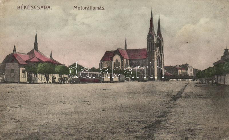 Békéscsaba, Motorállomás, templom (EK) https://www.darabanth.com/de/195-Fernauktion/195.0/Ansichtskarten/Ungarn~600007/Bekescsaba-Motorallomas-templom-EK~II747863
