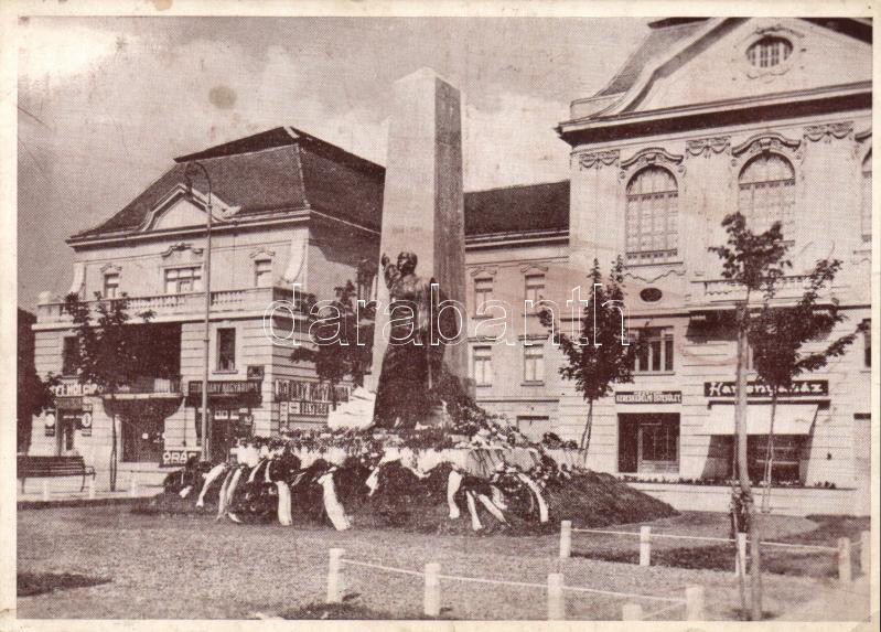 Mezőtúr Hősök szobra, városháza, üzletek (b) https://www.darabanth.com/de/195-Fernauktion/195.0/Ansichtskarten/Ungarn~600007/Mezotur-Hosok-szobra-varoshaza-uzletek-b~II748172