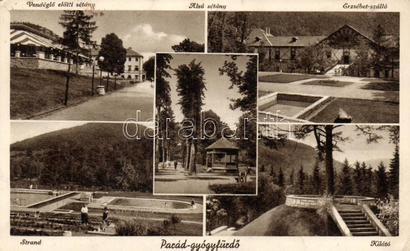 Beschreibung: Parád gyógyfürdő, vendéglő előtti sétány, alsó sétány, Erzsébet szálló, strand, kilátó (EK)