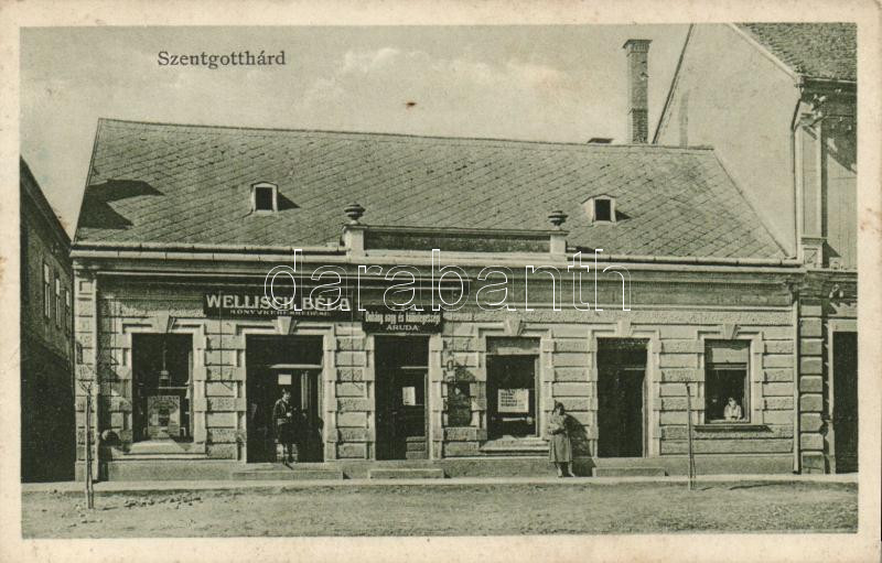 Szentgotthárd, Wellisch Béla könyvkereskedése, Dohányáruda (fa) https://www.darabanth.com/de/195-Fernauktion/195.0/Ansichtskarten/Ungarn~600007/Szentgotthard-Wellisch-Bela-konyvkereskedese-Dohanyaruda-fa~II744138