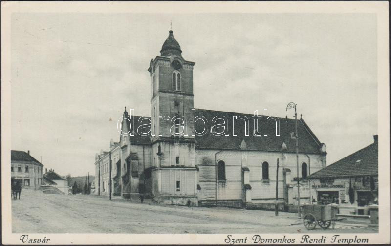 Vasvár, Szent Domonkos Rendi Templom, látszerész üzlet (EK) https://www.darabanth.com/de/195-Fernauktion/195.0/Ansichtskarten/Ungarn~600007/Vasvar-Szent-Domonkos-Rendi-Templom-latszeresz-uzlet-EK~II749279