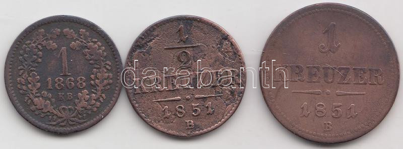 1851B 1/2Kr + 1851B 1Kr + 1868KB 1Kr T:2-/3 https://www.darabanth.com/de/195-Fernauktion/195.0/Numismatik/Ungarische-Munzen~400007/1851B-12Kr-plus-1851B-1Kr-plus-1868KB-1Kr-T2-3~II746846