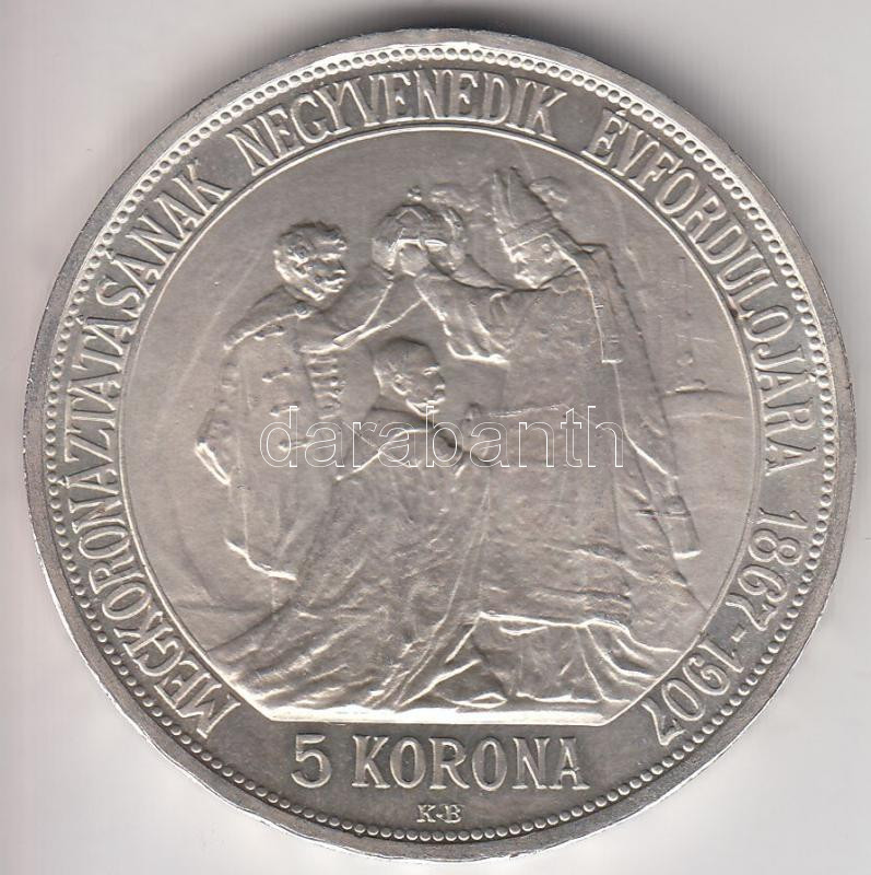 1907. 5K Ag "Koronázási évforduló" Artex-veret U.P jelzés nélkül! T:P ... https://www.darabanth.com/de/195-Fernauktion/195.0/Numismatik/Ungarische-Munzen~400007/1907-5K-Ag-Koronazasi-evfordulo-Artex-veret-UP-jelzes-nelkul-TP-Csak-1025db-R~II746000