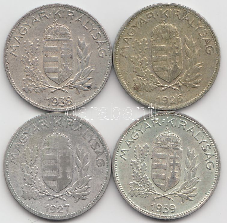 1926-1939. 1P Ag (4x) T:2-3 https://www.darabanth.com/de/195-Fernauktion/195.0/Numismatik/Ungarische-Munzen~400007/1926-1939-1P-Ag-4x-T2-3~II749882