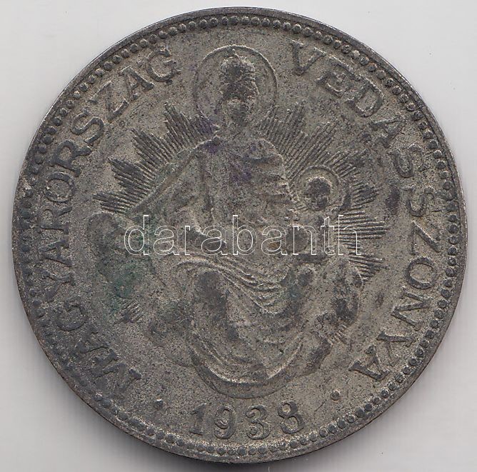 1938. 2P Ag "Madonna" T:3 https://www.darabanth.com/de/195-Fernauktion/195.0/Numismatik/Ungarische-Munzen~400007/1938-2P-Ag-Madonna-T3~II747315