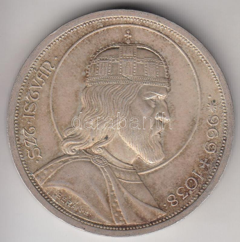 Beschreibung: 1938. 5P Ag "Szent István" T:2