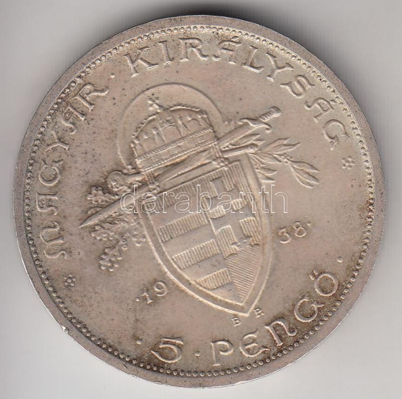 1938. 5P Ag "Szent István" T:2 https://www.darabanth.com/de/195-Fernauktion/195.0/Numismatik/Ungarische-Munzen~400007/1938-5P-Ag-Szent-Istvan-T2~II743514