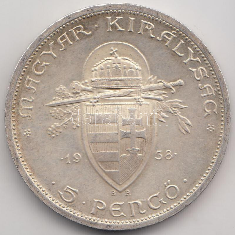 1938. 5P Ag "Szent István" T:2 https://www.darabanth.com/de/195-Fernauktion/195.0/Numismatik/Ungarische-Munzen~400007/1938-5P-Ag-Szent-Istvan-T2~II747758