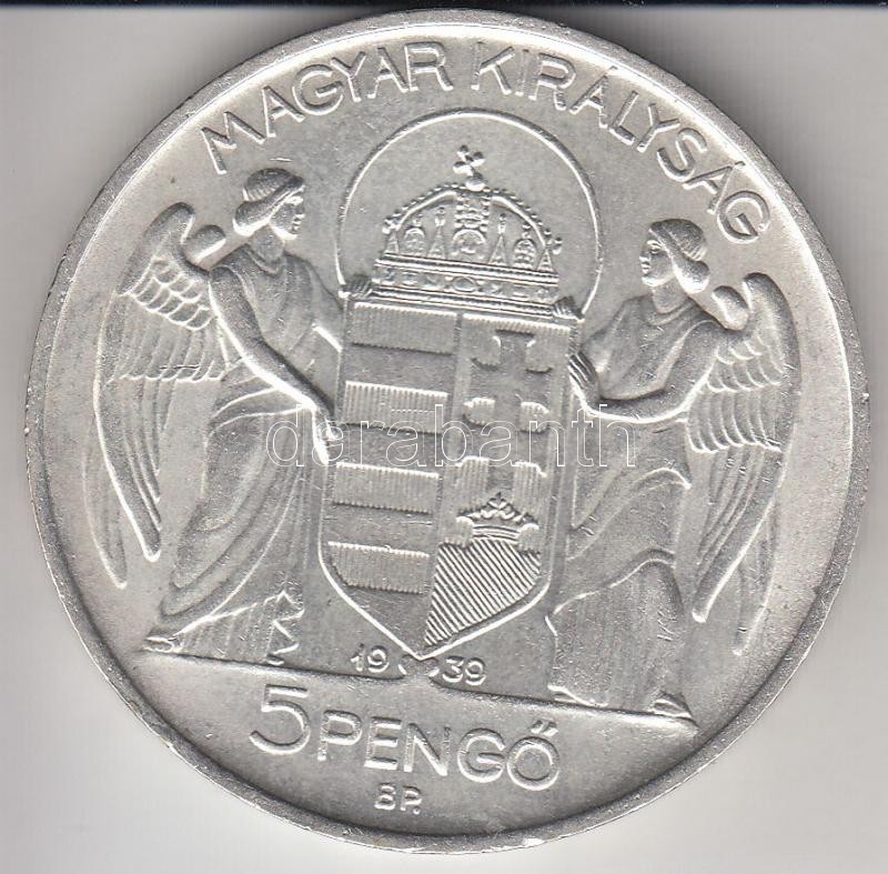 1939. 5P Ag "Horthy-balra" T:2 https://www.darabanth.com/de/195-Fernauktion/195.0/Numismatik/Ungarische-Munzen~400007/1939-5P-Ag-Horthy-balra-T2~II743957