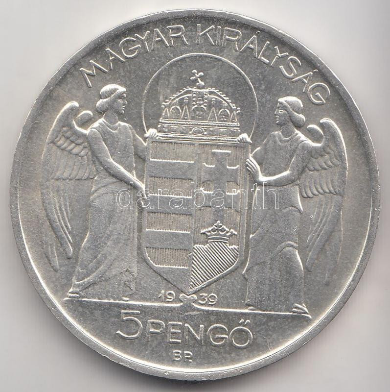 1939. 5P Ag "Horthy-balra" T:2 https://www.darabanth.com/de/195-Fernauktion/195.0/Numismatik/Ungarische-Munzen~400007/1939-5P-Ag-Horthy-balra-T2~II747245