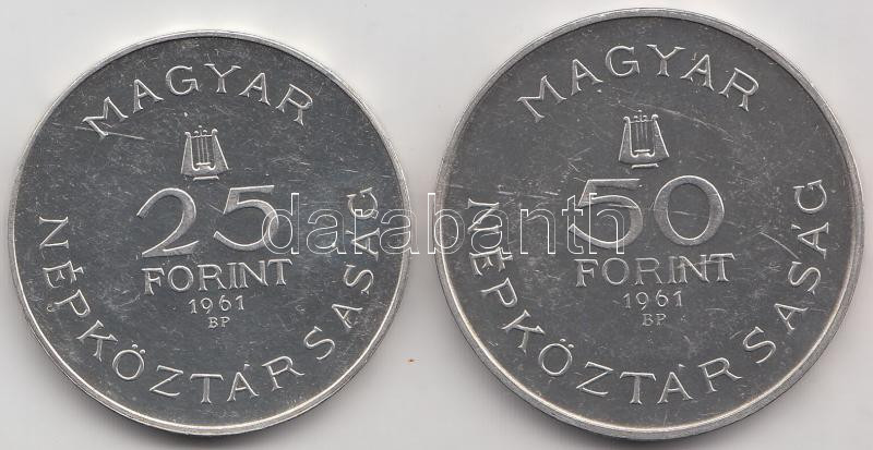 1961. 25Ft Ag + 50Ft Ag "Bartók" pár T:P https://www.darabanth.com/de/195-Fernauktion/195.0/Numismatik/Ungarische-Munzen~400007/1961-25Ft-Ag-plus-50Ft-Ag-Bartok-par-TP~II747844