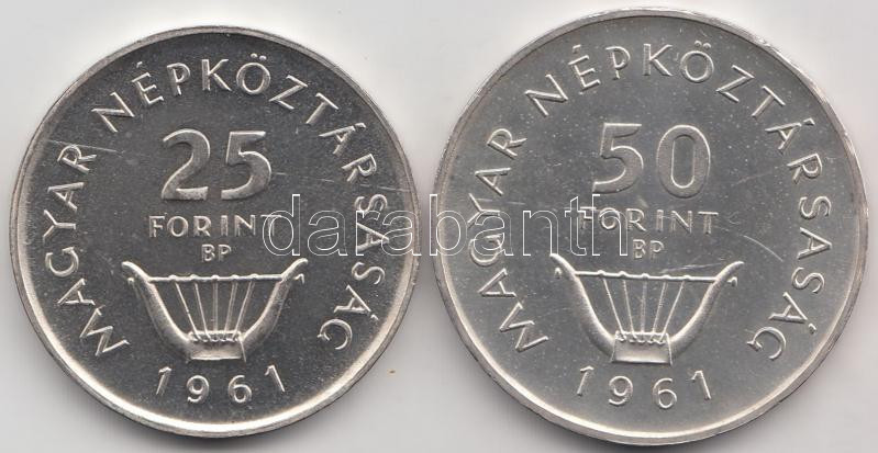 1961. 25Ft Ag + 50Ft Ag "Liszt" pár T:P https://www.darabanth.com/de/195-Fernauktion/195.0/Numismatik/Ungarische-Munzen~400007/1961-25Ft-Ag-plus-50Ft-Ag-Liszt-par-TP~II747850