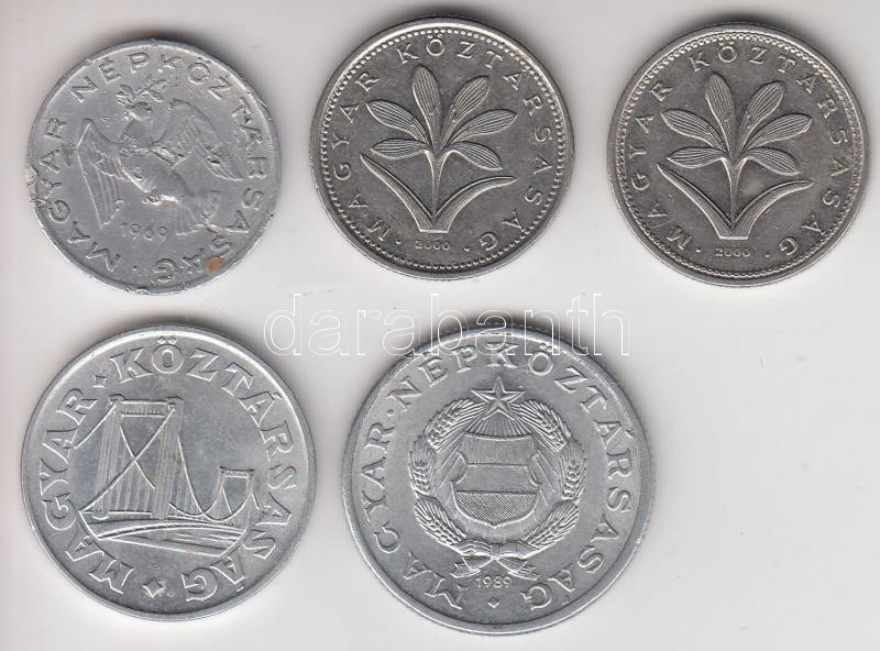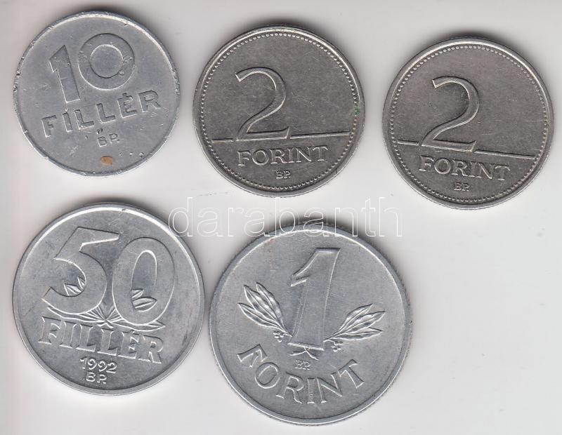 1969. 10f Al "0" belső átmérője nagyobb + 1992. 50f + 1989. 1Ft sugaras + 2000. 2Ft (2x) klf változatok T:vegyes