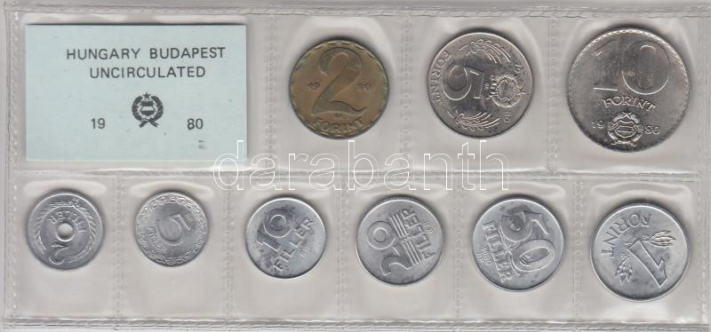1980. 2f-10Ft 9db klf érmés forgalmi sor fóliatokban T:1 https://www.darabanth.com/de/195-Fernauktion/195.0/Numismatik/Ungarische-Munzen~400007/1980-2f-10Ft-9db-klf-ermes-forgalmi-sor-foliatokban-T1~II747241