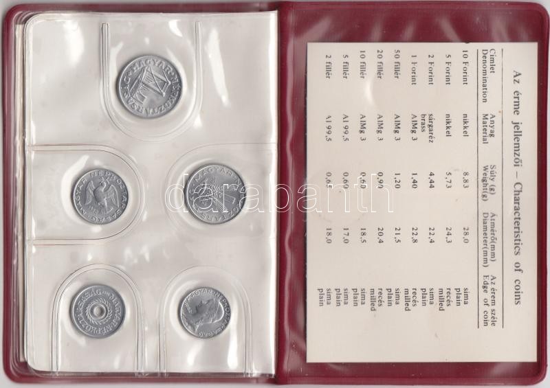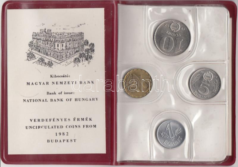 1982. 2f-10Ft 9klf "Magyar Népköztársaság" forgalmi érméi sötétbordó m... https://www.darabanth.com/de/195-Fernauktion/195.0/Numismatik/Ungarische-Munzen~400007/1982-2f-10Ft-9klf-Magyar-Nepkoztarsasag-forgalmi-ermei-sotetbordo-mubortokban-T1~II747160