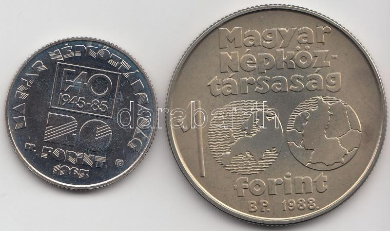 Beschreibung: 1985. 20Ft "FAO" + 1988. 100Ft "Labdarúgó EB / Kapus" T:BU