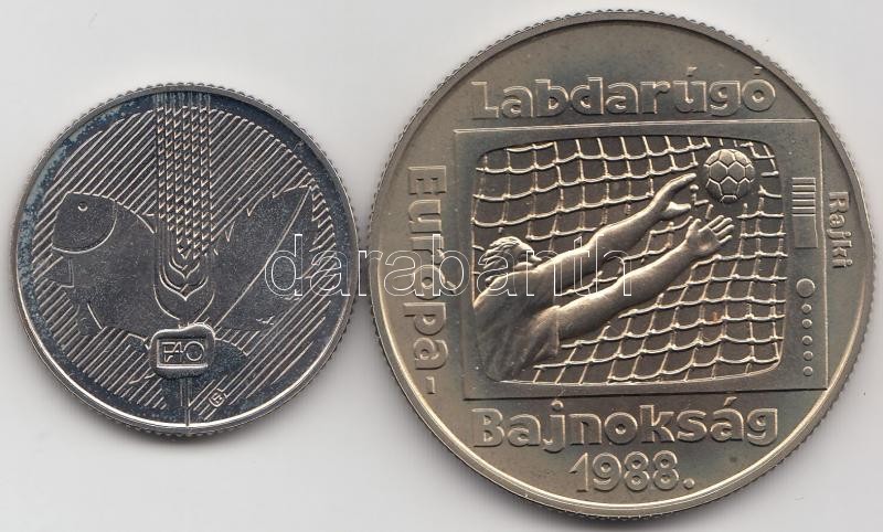 1985. 20Ft "FAO" + 1988. 100Ft "Labdarúgó EB / Kapus" T:BU https://www.darabanth.com/de/195-Fernauktion/195.0/Numismatik/Ungarische-Munzen~400007/1985-20Ft-FAO-plus-1988-100Ft-Labdarugo-EB-Kapus-TBU~II748748