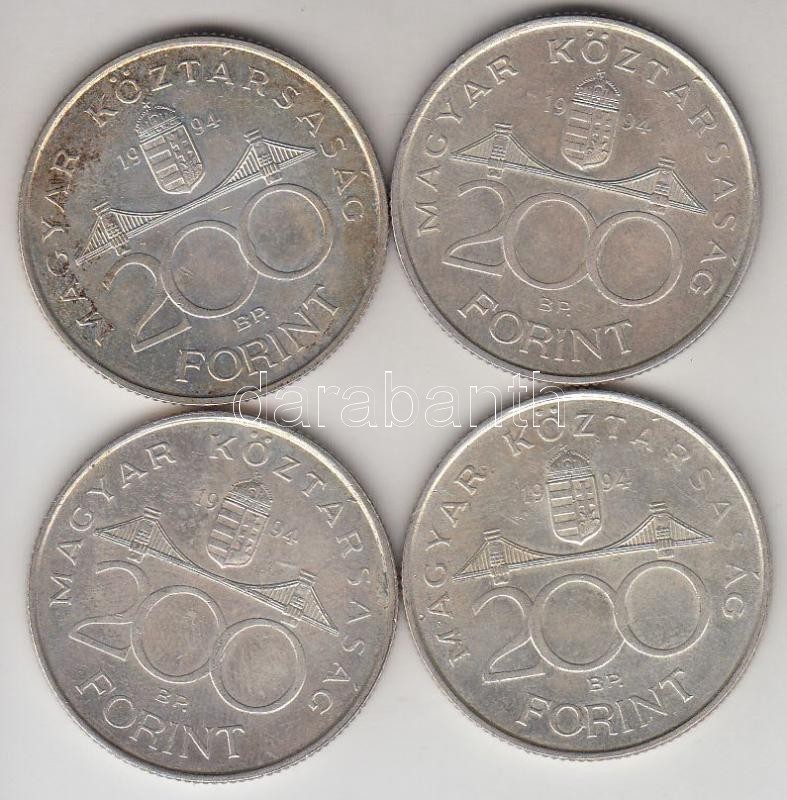 1994. 200Ft Ag "Deák" (4x) T:2 https://www.darabanth.com/de/195-Fernauktion/195.0/Numismatik/Ungarische-Munzen~400007/1994-200Ft-Ag-Deak-4x-T2~II743771
