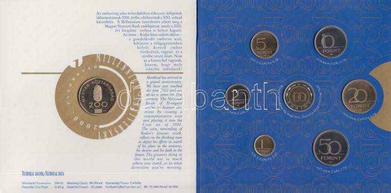 2000. "Magyarország Pénzérméi" 1Ft-100Ft 7klf db + 200Ft "Millenium", ... https://www.darabanth.com/de/195-Fernauktion/195.0/Numismatik/Ungarische-Munzen~400007/2000-Magyarorszag-Penzermei-1Ft-100Ft-7klf-db-plus-200Ft-Millenium-szettben-TPP-Csak-3000db~II743850