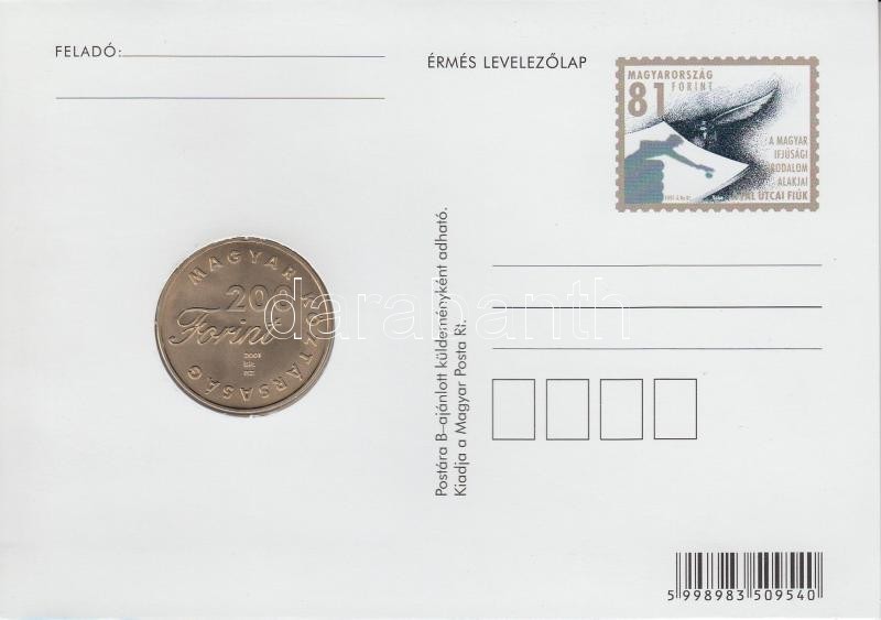 Beschreibung: 2001. 200Ft "Molnár Ferenc: A Pál utcai fiúk" érmés levelezőlapon T:BU