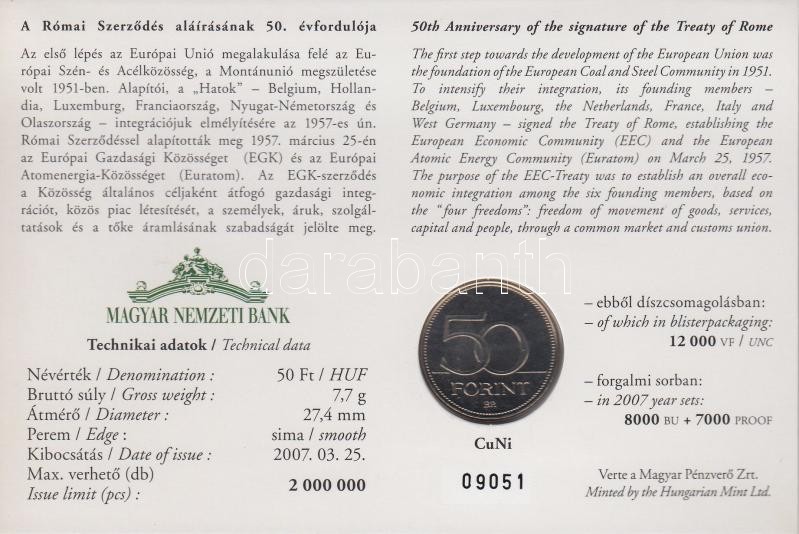 2007. 50Ft "Római Szerződés" elsőnapi veret számozott emléklapon T:1 C... https://www.darabanth.com/de/195-Fernauktion/195.0/Numismatik/Ungarische-Munzen~400007/2007-50Ft-Romai-Szerzodes-elsonapi-veret-szamozott-emleklapon-T1-Csak-12000db~II744746