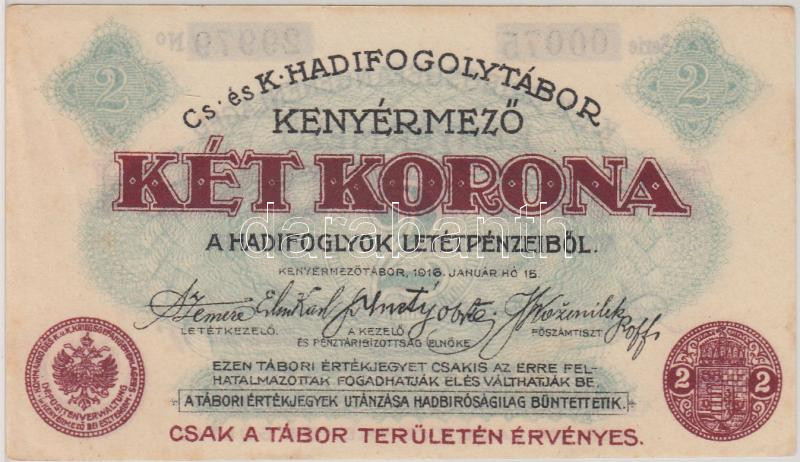 Beschreibung: Kenyérmező/hadifogolytábor 1916. január 15. 2K arab sorozat-és sorszámmal T:II(apró beszakadás)