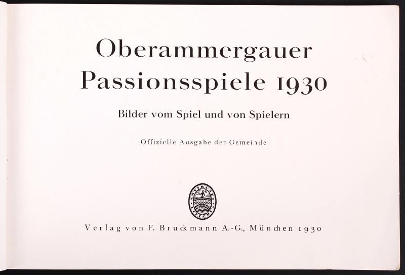 Oberammergauer Passionspiele 1930. Bilder vom Spiel und von Spielern. The Oberammergau Passion-Play of 1930. Pictures of the play and of the players. München, 1930, F. Bruckmann A.-G. 31db színes illusztrációval. Kiadói papírkötésben /