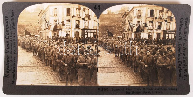 Beschreibung: cca 1918 I. világháború. Amerikai katonák Brestben. Sztereófotó. /