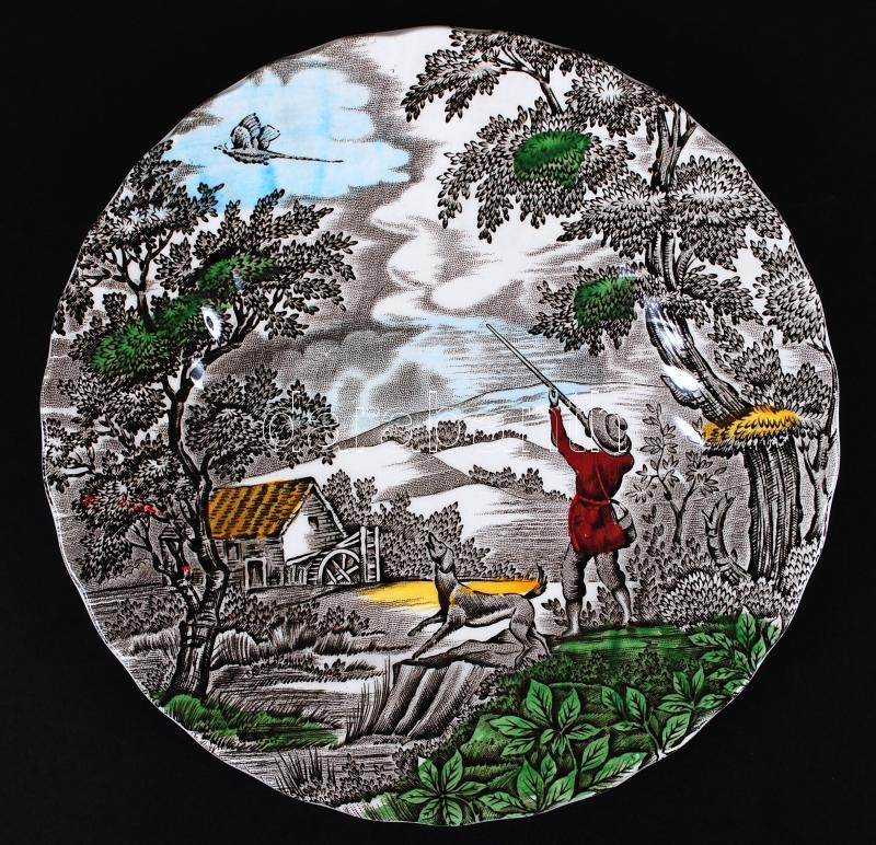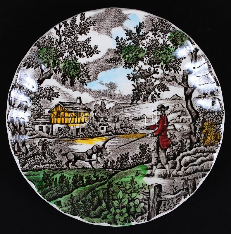 The Hunter, vadászjelenetekkel díszített, máz alatt részben kézzel fes...