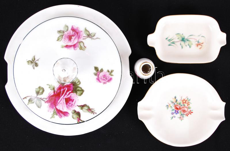 Beschreibung: Vegyes porcelán tétel, érdekes formájú kínáló (apró lepattanás), hollóházi vázák és hamutál