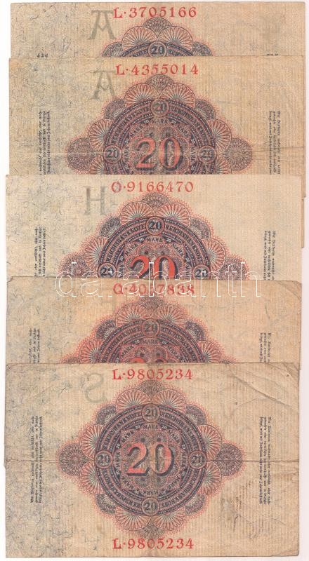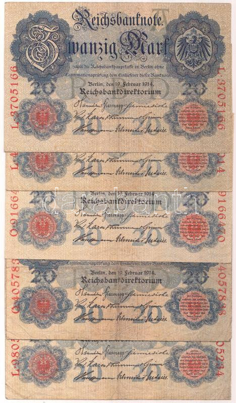 Beschreibung: Német Birodalom / Császárság 1914. 20M hétjegyű sorszám (5x) T:II-,III